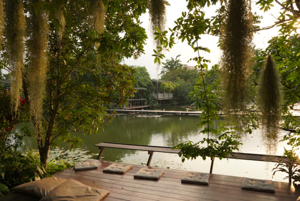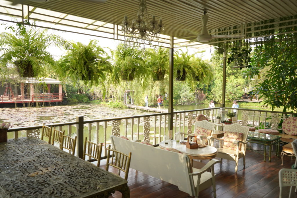 ここはタイで人気のカフェスタイルの一つ、蓮の池に囲まれたナチュラルカフェとなっています。バンコク郊外で電車は無く、車利用が必要になりますが、無料の駐車場が敷地内にあるので車移動も安心です。