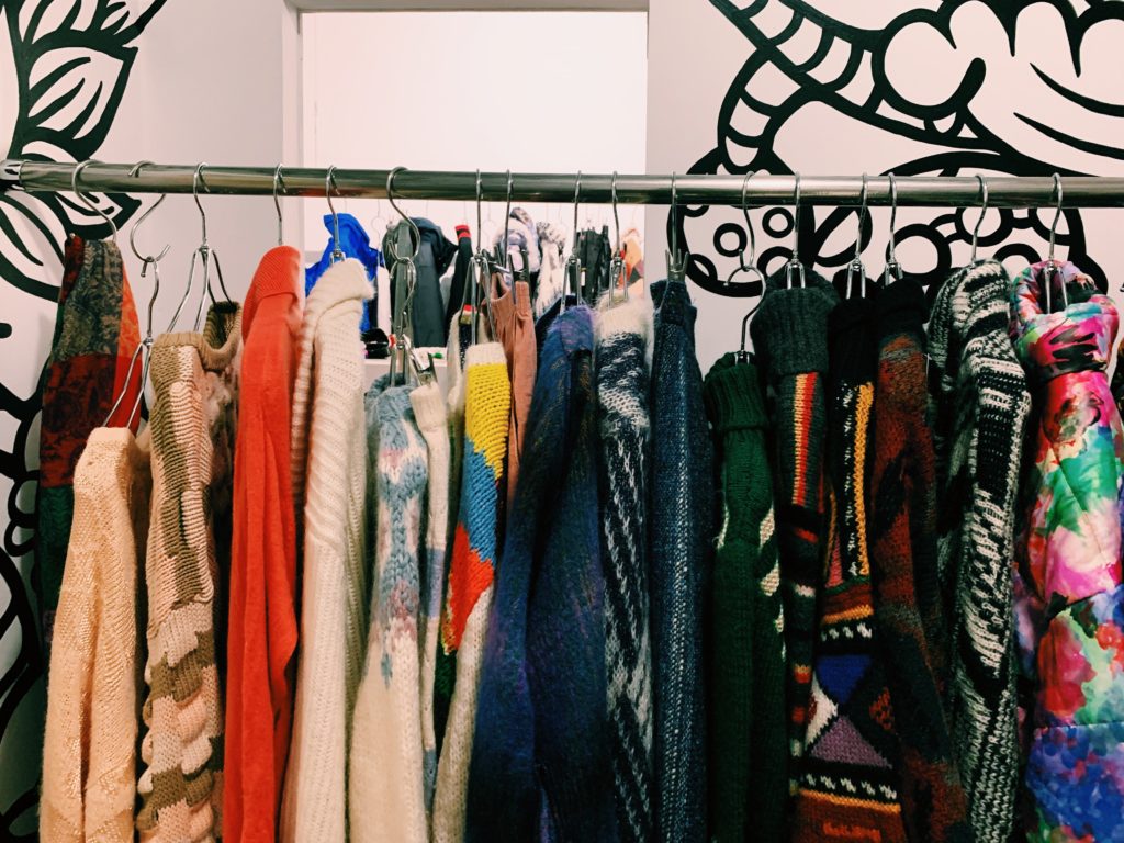 デザインは珍しいものが多く、価格は10,000円以下で買えるお手頃な商品もたくさんあります。ラックの端から端までカラフルで個性的な洋服で埋め尽くされた空間は、圧巻です!