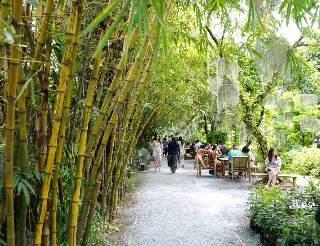 お店の名前の通り、緑とバンブー(竹)に囲まれた店内は思った以上に広くて、席数もかなり多く、私は仏教のお休みの連休に行ったせいか家族連れで来ている方が殆どでした。