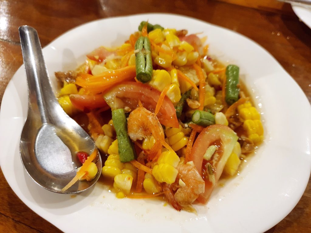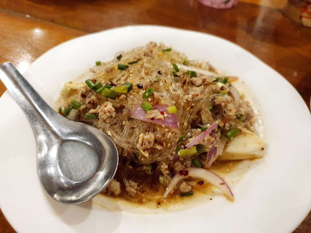 ヤムウンセンが食べたかったのですが残念ながらメニューに無かったのでラープウンセンをオーダー。ソムタムカオポードも辛すぎず好みの味でした。(日本人に人気のコームヤーン(豚の首の炙り焼き)も80バーツでありました。)