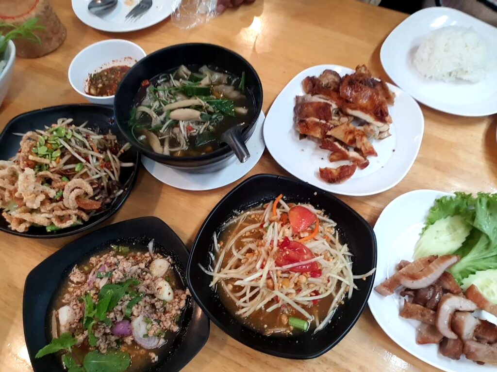 この量+ガイヤーン1皿追加、ご飯5つ頼んでも1人150バーツ。人気の理由がわかります。パーキングはありますが、お昼時は本当にいつも店内がほぼ満席の大人気店なので、大人数で使いたい場合は予め予約をした方が良いと思います。