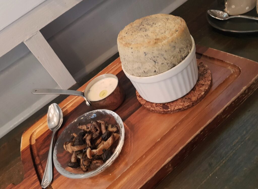 個人的にお勧めのスフレは、マッシュルームが入ったスフレ。私はタイに来て初めて食事系のスフレを食べたのですが、スフレにきのことソースをかけた後、口の中で柔らかく溶ける感じは本当に言葉で表すことが難しいほど美味しいのでぜひ試して欲しいです。