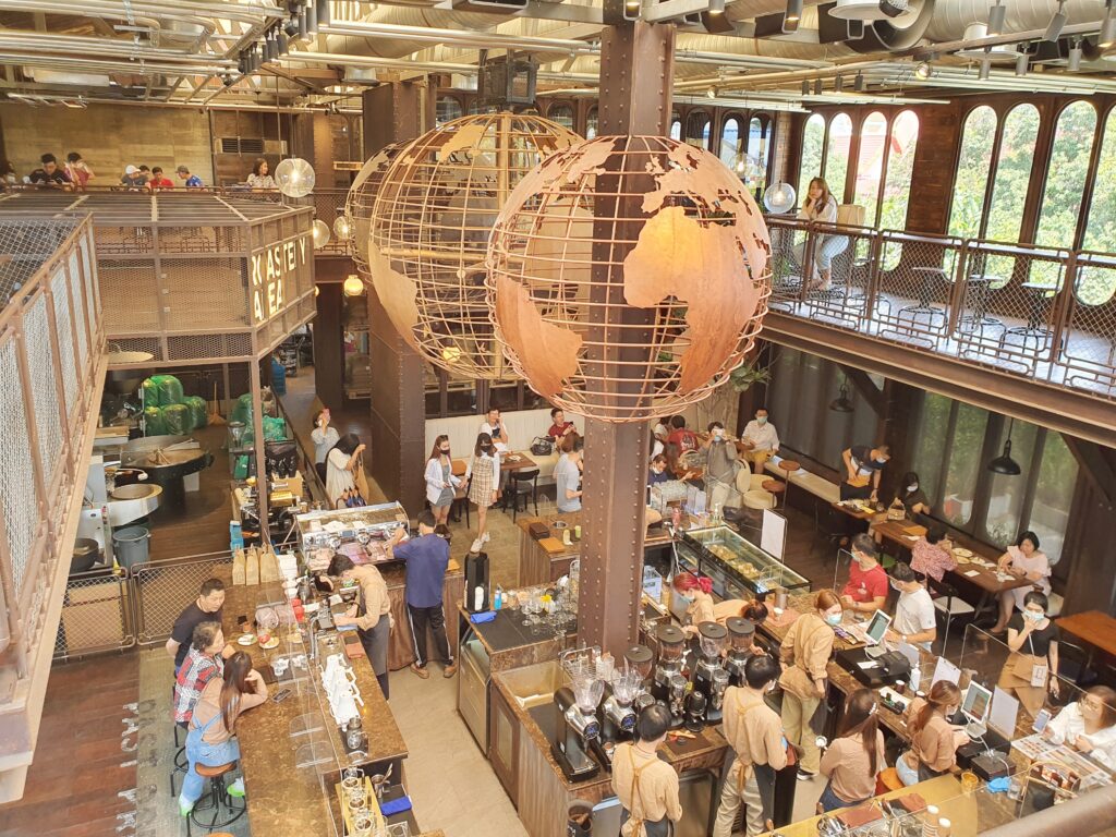 市内中心地だとにもアーリーやラットプラお方面にも店舗(Nana Coffee Roasters)がありますが、今回訪れたNANA Hunter Coffee Roastersはすこし中心地から外れたところにあるため、駐車場も広く完備されており、店内もかなりの座席数があります。話題が過ぎた頃に行ったつもりだったのですが、訪れた時は1階の席はほぼ満席で、続々とお客さんも入ってきていました。