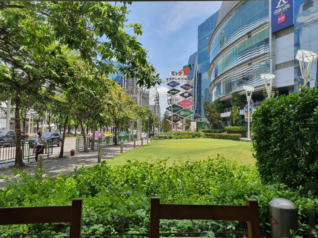 お店がある場所は、人気ナイトマーケット「ラチャダー鉄道市場(過去記事はこちら)」に隣接するショッピングモール「ESPLANADE(エスプラネード)」の横の少し狭いソイを入ったところにあります。数台分のパーキングは完備されており、車で行っても問題ありませんでした。