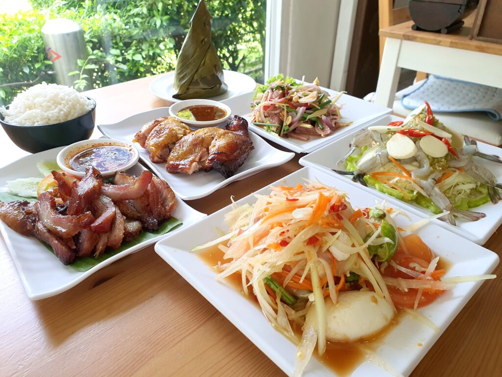 今回オーダーしたのは、ソムタムカイケム、ガイヤーン、コームヤーン、ヤムネーム、クンチェーナンプラーとお水、ごはん。2人で結構たくさん頼みましたが美味しかったので全て完食。お値段もストリートフードと比べると高いですが、これだけ食べて全部で約600バーツだったのでお手頃でした。