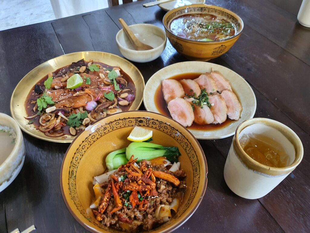 ビャンビャン麺は見た目通りけっこう辛くて一緒についてくるお茶を何回もおかわりしましたがとても美味しかったです。またSNSでは鴨を勧めている人が多かったのでそちらも頼んでみましたが、これは頼んで大正解でした。