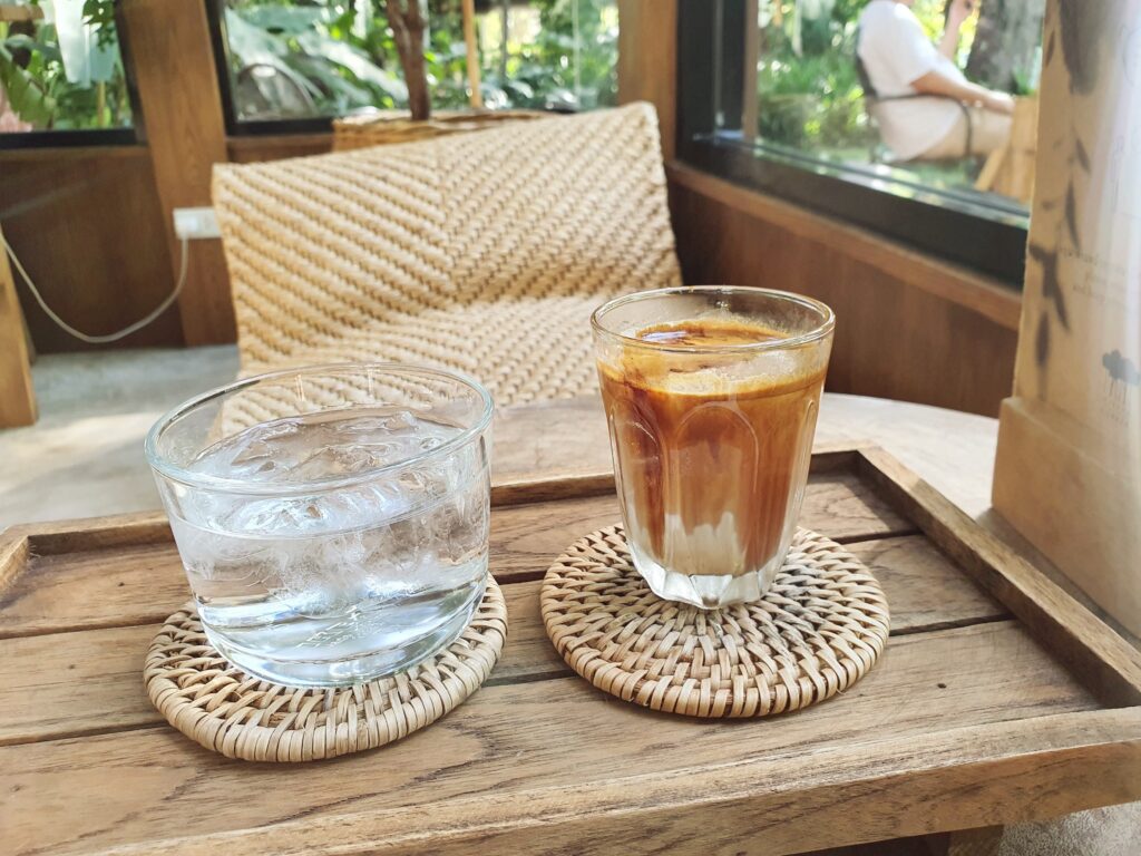 今回頼んだのはSignatureの1つで、タイのカフェで結構良く頼むDirty 100バーツ。エスプレッソの香りとミルクの合わさり具合がとても合っていて美味しかったです。デザートも食べたかったですが、お腹いっぱいだったので今回はやめました。