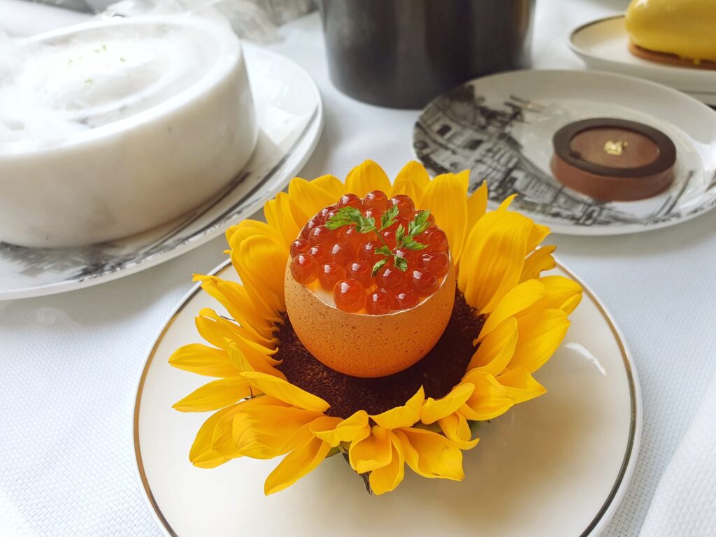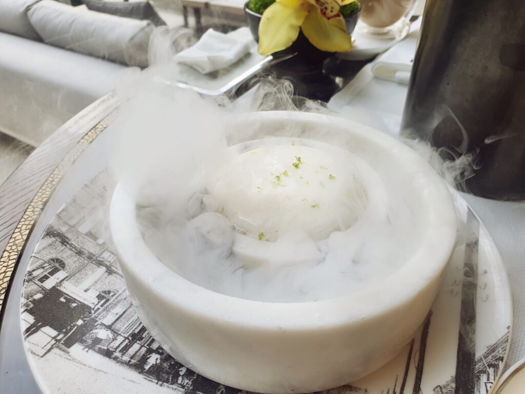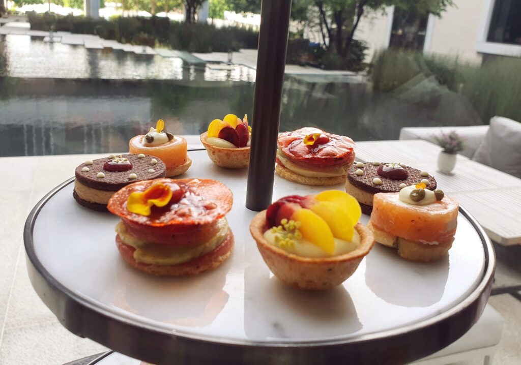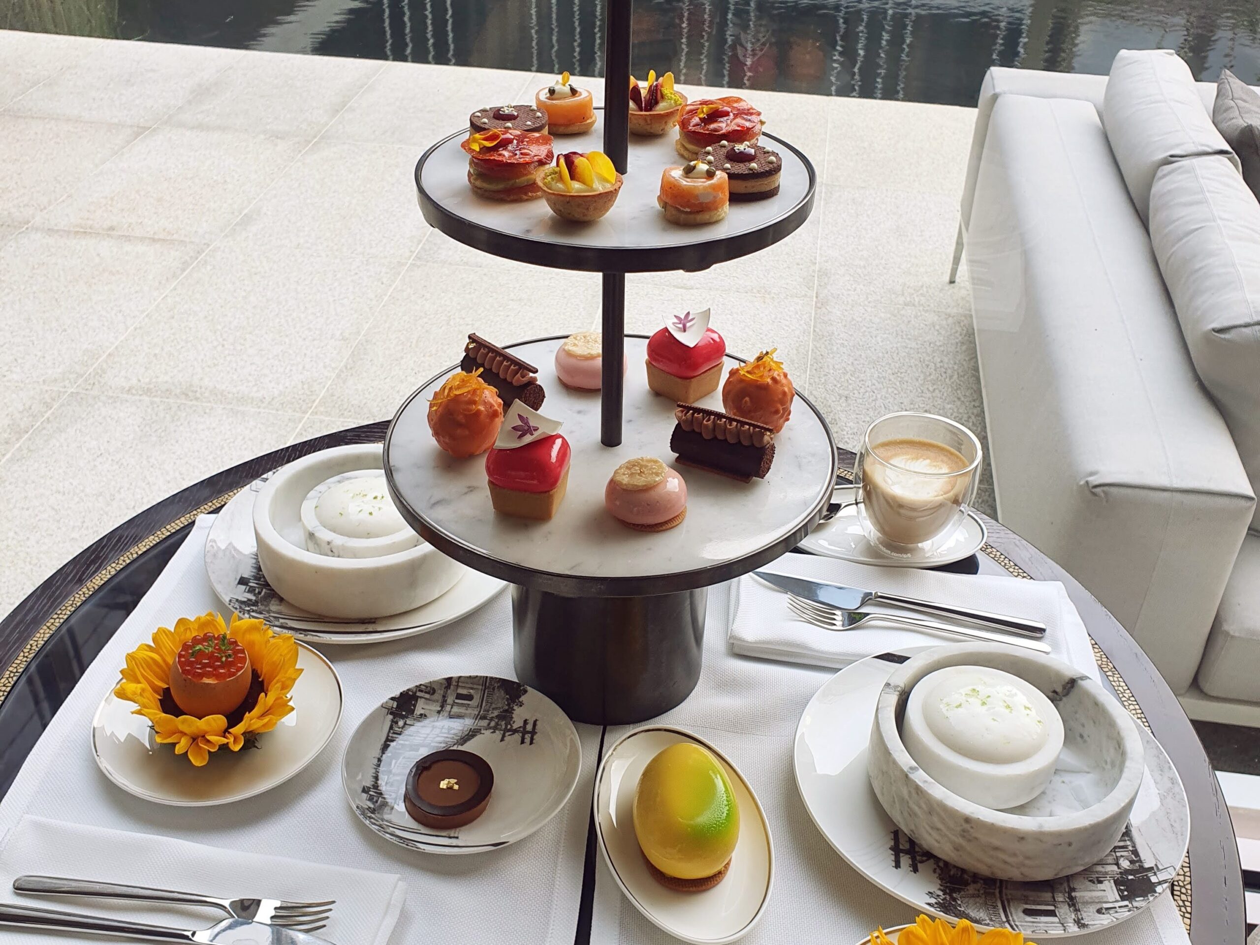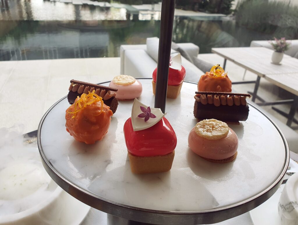 そしてアフタヌーンティー。こちらのアフタヌーンティーの内容にはスコーンは無かったですが、マンゴーのプリンやココナッツのシャーベット、チョコレートケーキなどがありました。