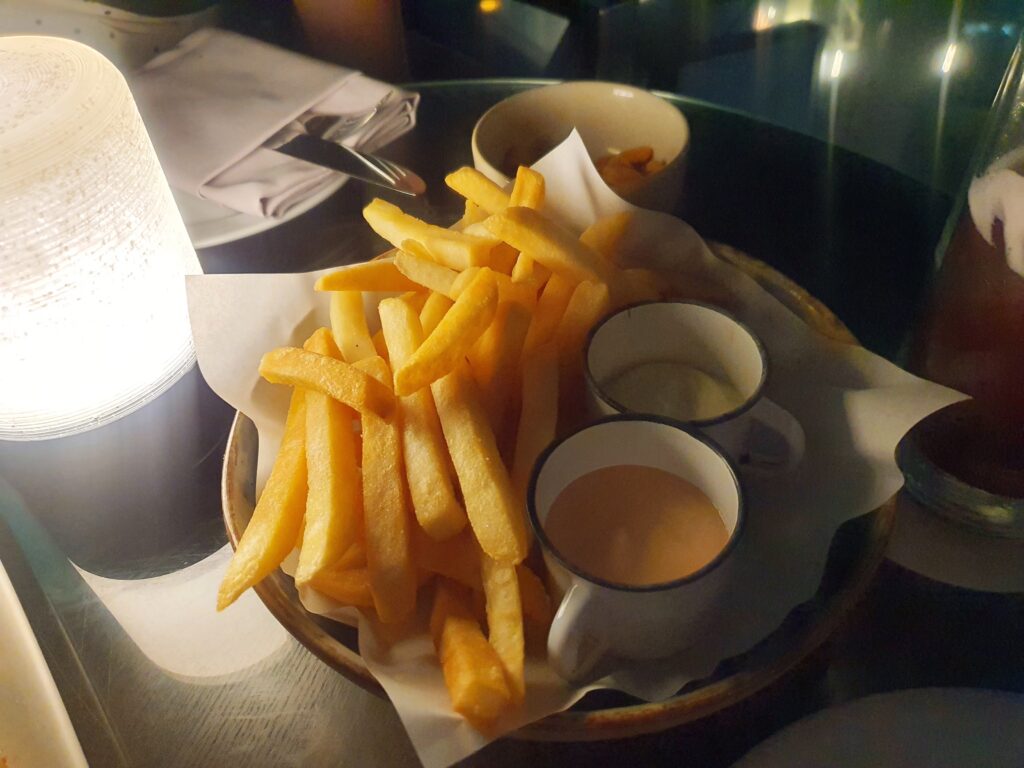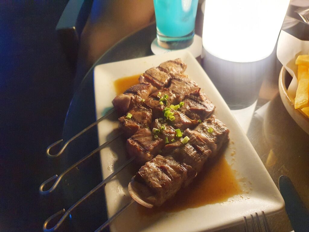 今回はご飯を食べないで行ったので、食事も一緒に取ることにしました。有名ルーフトップバーの中では比較的価格帯が優しい方で、お酒はグラスで400バーツ前後、モクテルは300バーツ前後でした。お肉が美味しそうだったので、少し高いビーフの串焼きとフレンチポテト、ポテトが270バーツなのは高くてびっくりしましたが、串焼きはお値段が高いだけあってかなり美味しかったです。お酒1杯とモクテル1杯、串焼きとフレンチポテトにVATとサービスチャージが付いて全部で1,760バーツ(約6,100円)でした。