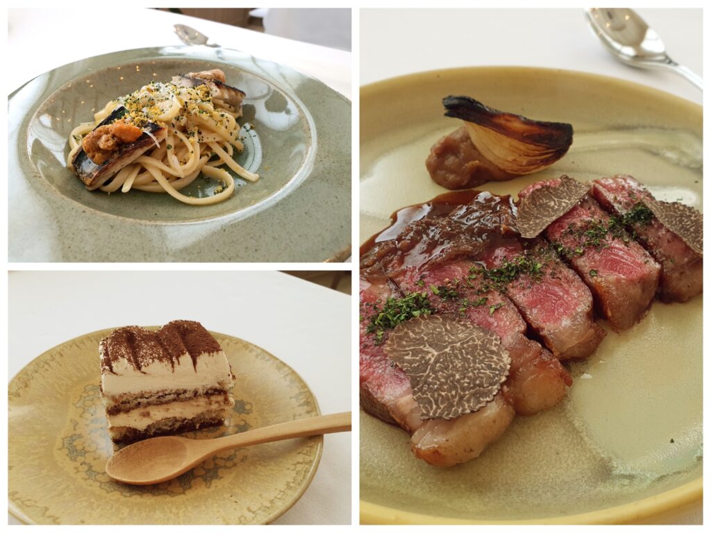 私のお気に入りはデザートのティラミスです。量はあまり多くないですが、ドライアイスの演出が素敵で味も美味しいです。