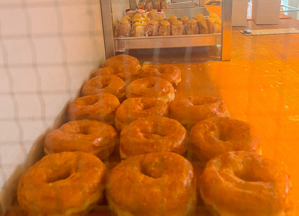 ぱっと見では列が短く感じたので待ち時間は30分くらいかな?と思いましたが購入し終えたのが11:00前くらいだったのでちょうど1時間くらいの待ち時間でした。並んでいる間も焼き途中のドーナツが見えてわくわく。