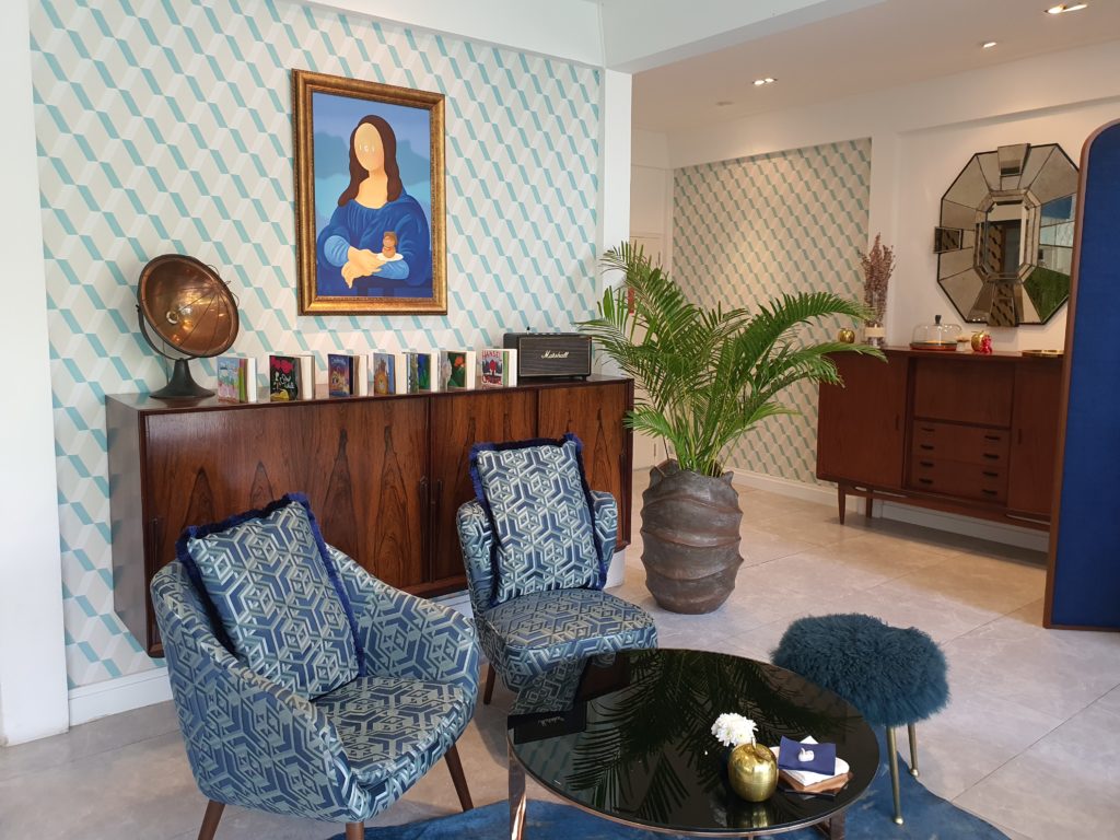 お店は2階建てで席数もかなりありました。お店自体のインテリアも青を基調としていてとてもおしゃれです♥️