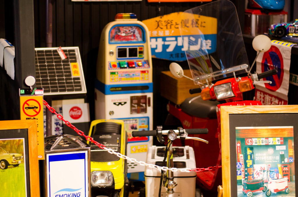 店内に入ると日本好きのオーナーが購入した少し懐かしい日本のものがたくさん飾ってあり、昭和の日本にタイムスリップしたかのような気分が味わえるのも特徴。
