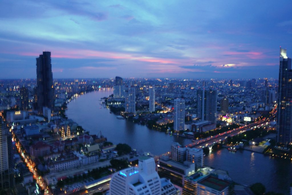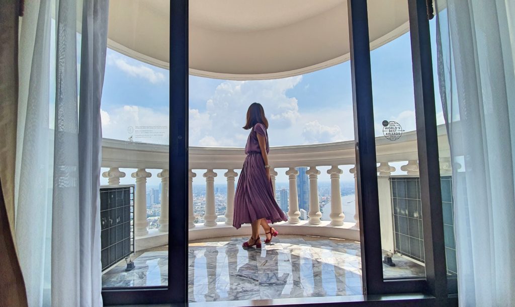 案内されたお部屋は56階。バルコニーから見えるチャオプラヤー川の眺めが本当に素敵なので、少し余分に値段を出してでもリバービューで予約がお勧めです。昼も夜も絶景でした。