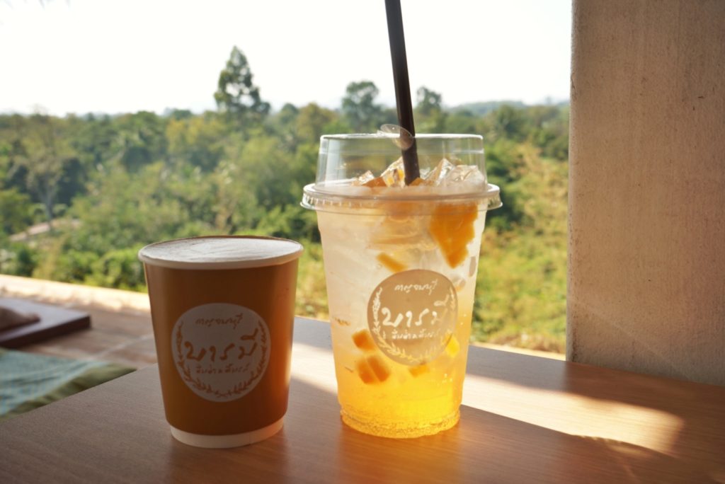 飲み物の値段はバンコク程高くは無いですが、人気カフェの為か郊外のカフェの中では100バーツ前後と高めの設定でした。