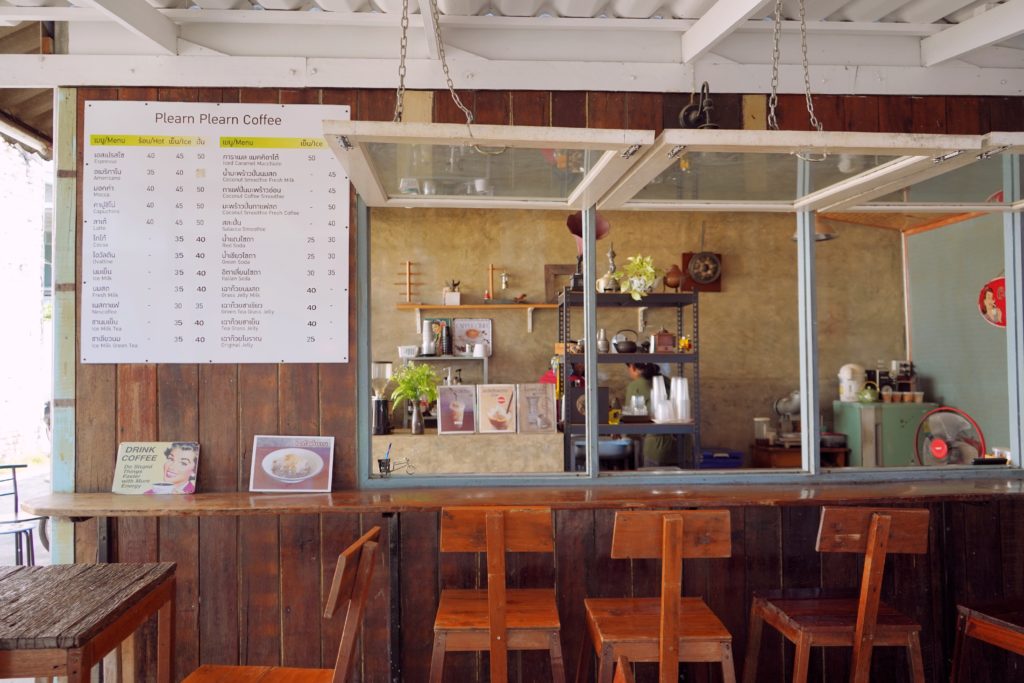 半分くらい歩いたところに位置するこのカフェは開放的な空間と