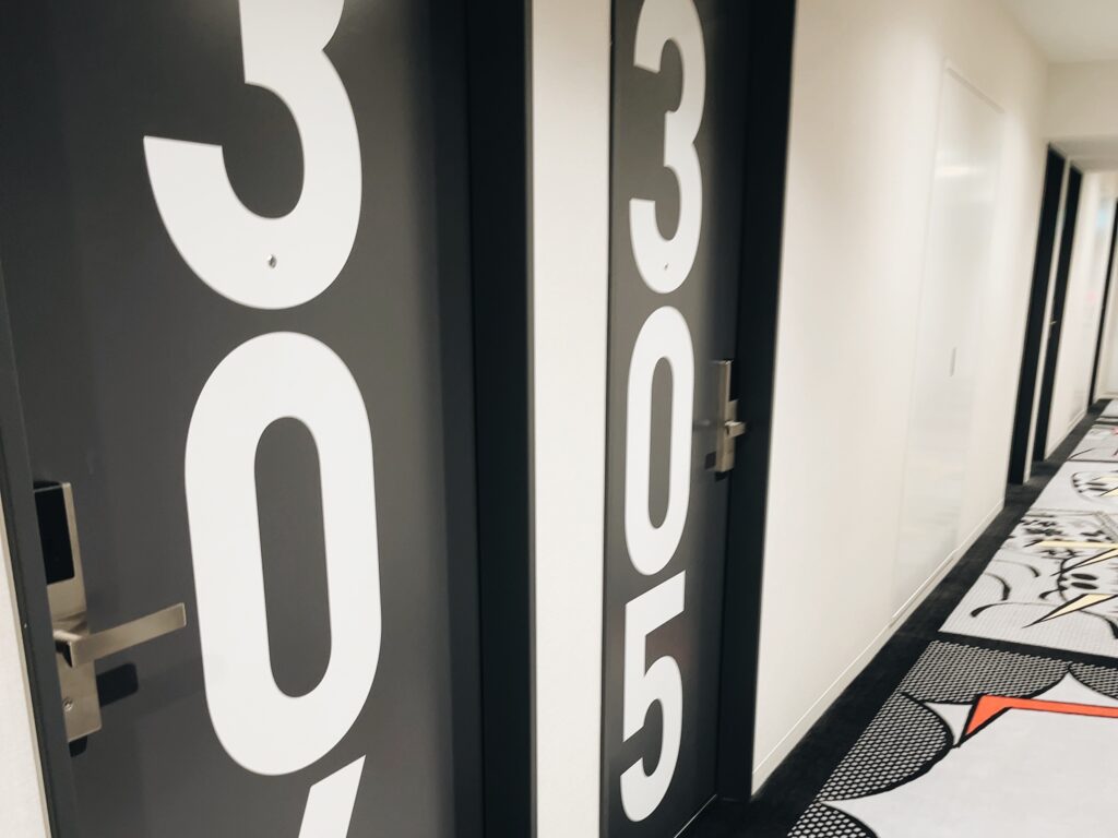 部屋に向かうまでの間も遊び心満載の”MANGA”モチーフがたくさん。