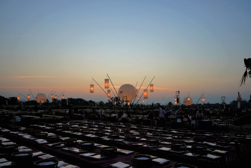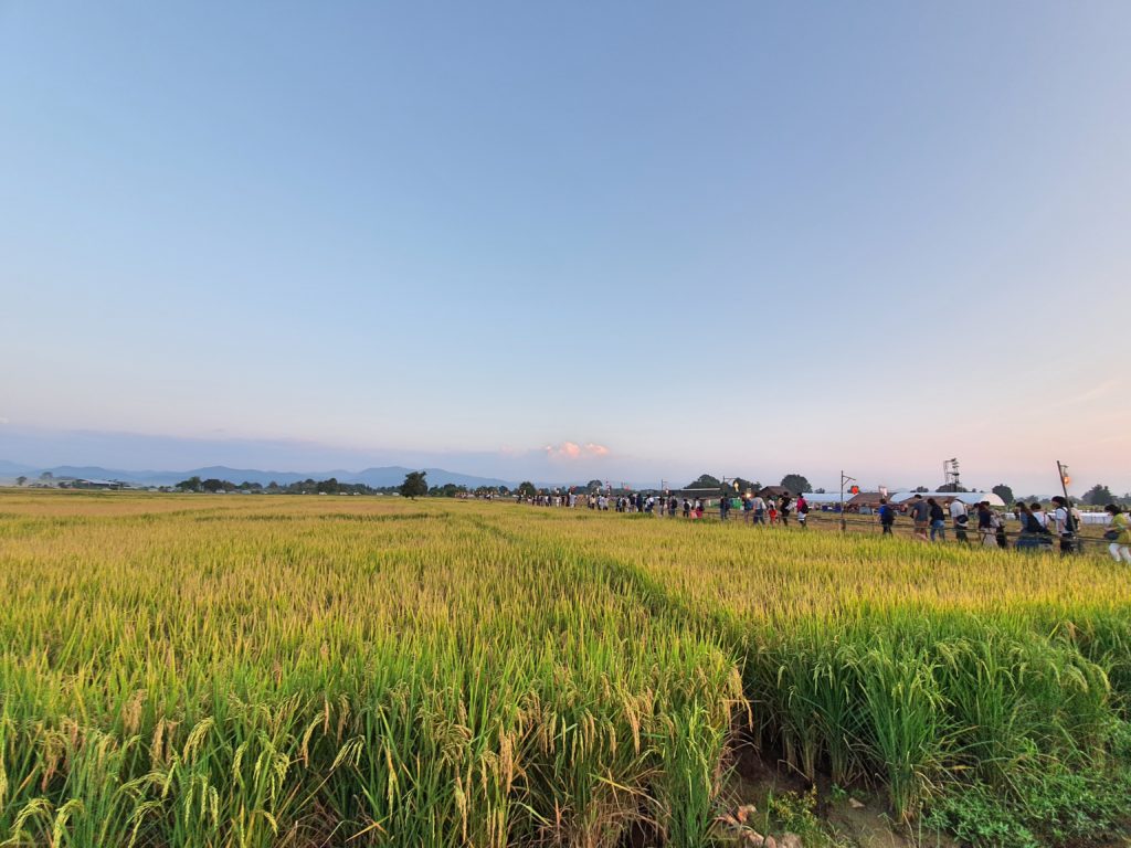 さて、当日ですがまずチェンマイ市内はかなり混雑しますので余裕を持った行動をお勧めします。普段渋滞しない街中もこの日とソンクランは渋滞するそうです。コムローイ祭りの会場ですが、ご飯を食べるスペースが設けてあり人も多いのでレジャーシートはいりません。田んぼのど真ん中が会場で、かなり虫が多いので虫除けは必須アイテムでした。