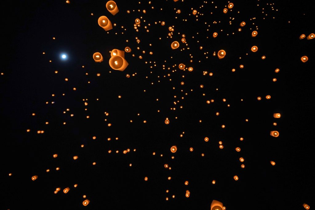 コムローイ祭り自体はチェンマイの色々な場所で行われておりツアーに参加しなくてもランタンをあげることは可能ですが、1万個ものランタンが空にどんどん上がっていく風景を見たい場合はツアー参加が必要になるかと思います。地元の人とランタンを空に上げたいという楽しみ方がしたい場合であれば、ランタン自体は50バーツ以下で街中で購入出来るのでかなりお安く楽しむ事ができます。またツアーだと日系の旅行会社が集まって同じ開催場所へ行くせいか、8割のお客さんは日本人だったところも少し残念でしたがそれだけ知名度が上がって人気があるのだと思います。