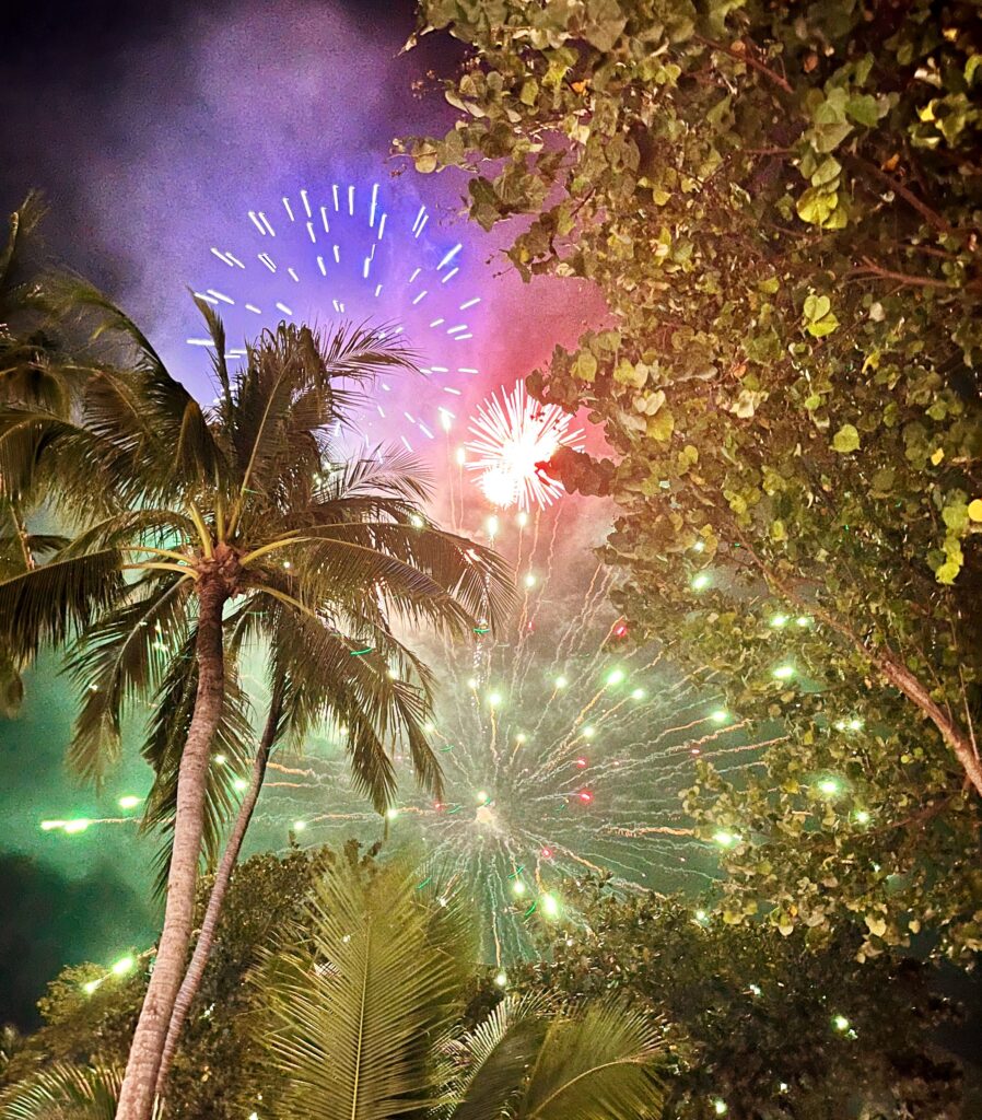 年越しカウントダウンの場所はお隣のホテルのビーチサイド。10分前くらいからホテルの滞在客が集まり始め12時の年越しと同時に花火があがりました。花火の数はあまり多くなかったですが、あがると思っていなかったのでこういう旅行地での年越しは最高だなと改めて思いました。