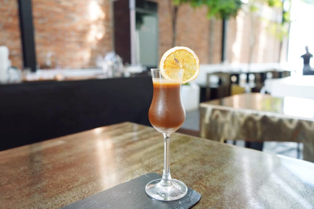 注文したのはSignatureメニューの1つ「Reya (オレンジ+コーヒー)」とラテ。デザートやご飯メニューもありましたが、滞在していたホテルの朝食ビュッフェがかなりお腹いっぱいで、この後も街歩きをする予定だったのでドリンクだけ注文。お値段は観光地設定の価格だったので、バンコクと同等の価格レベルでした。