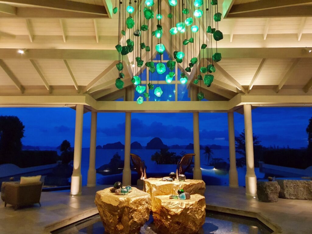 夜のロビーもとても美しく目の前に広がる海と岩が幻想的でした。