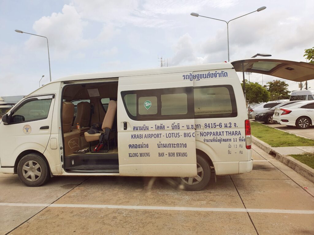 クラビ空港からは車で約40分。私たちは特にレンタカー等を予約せずGrabを使って行けば良いかな位に考えて行ったのですが、期待していたGrabは殆ど走っておらず(Grab自体はあるようですが、たまたま行ったタイミングが悪かったのか、空港からは1台も見つけることが出来ませんでした。)。タクシーのお値段は800バーツ(約2,800円)とかなり高額で、結局行きは乗り合いのシャトルバスで行きました。一人200バーツで時間も50分位で着いたのでシャトルバスで正解でした。
