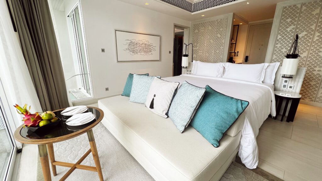 レストランでゆっくり過ごした後は、チェックインの時間となったのでお部屋へ案内。元々「デラックス ガーデン プール スイート」という一番安いお部屋を予約していたのですが、有難いことにアップグレードされてオーシャンビューのお部屋になりました。