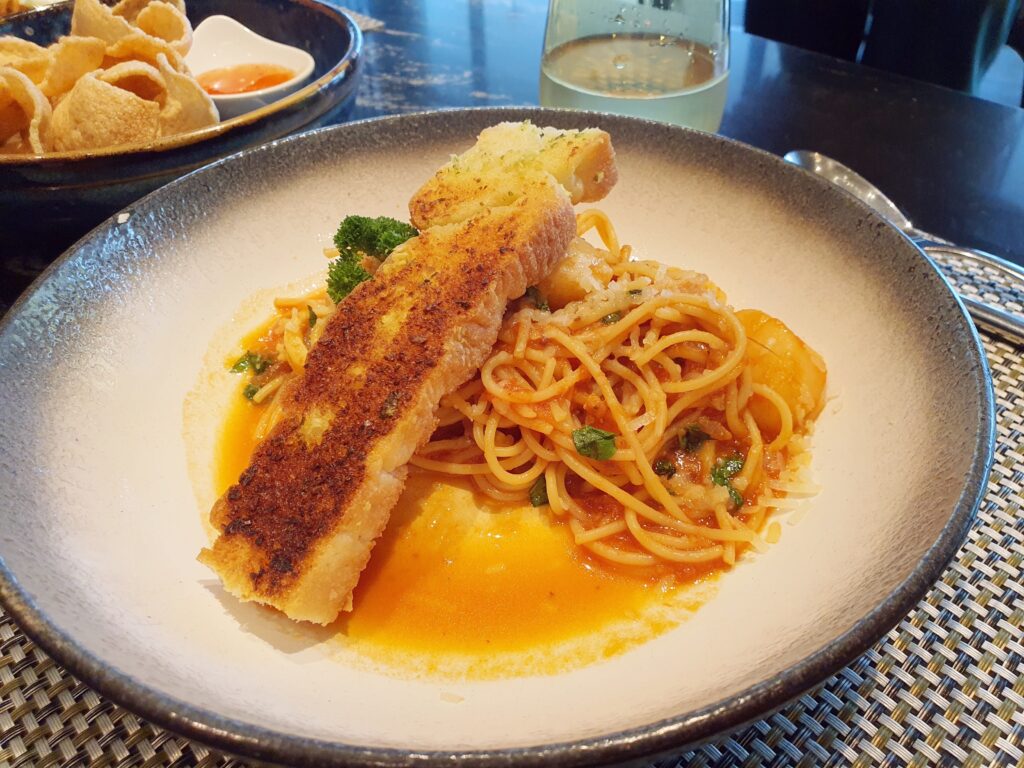 お昼ごはんで注文したのは、シーフードパスタ。5つ星ホテル内にあるレストランなのでお値段は高かったですが値段相応の美味しさでした。