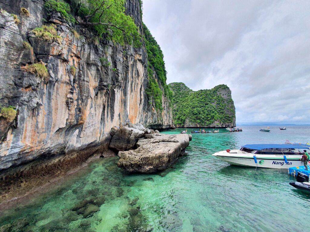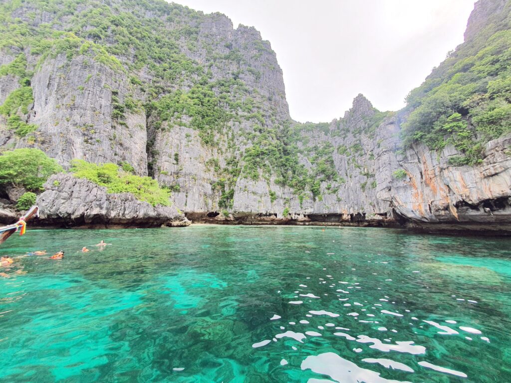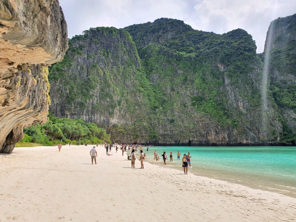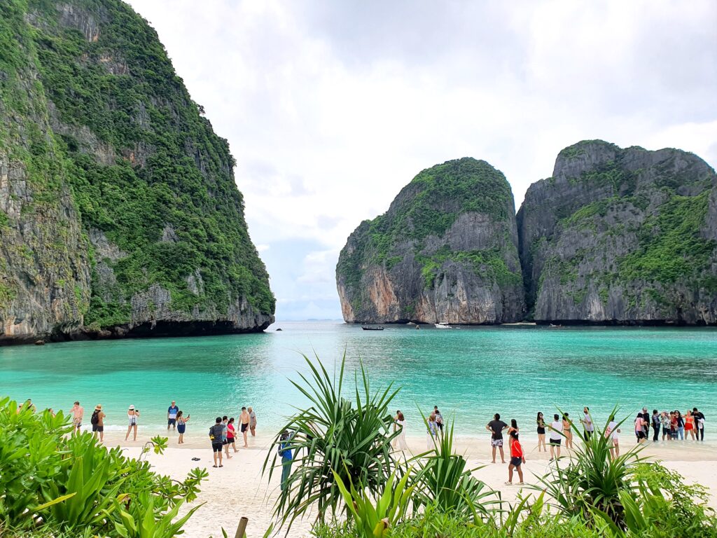 マヤベイは「The Beach (ザ・ビーチ)」という映画の舞台になった島。観光保護のため2021/12までずっと閉鎖されていましたが2022/01から入場者数を制限して再開。その為、1回に入島できる人数も限られていてツアーごとの予約制になっているようです。