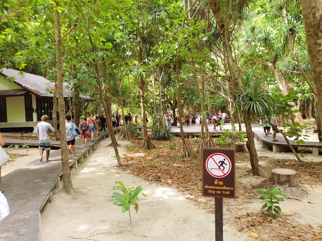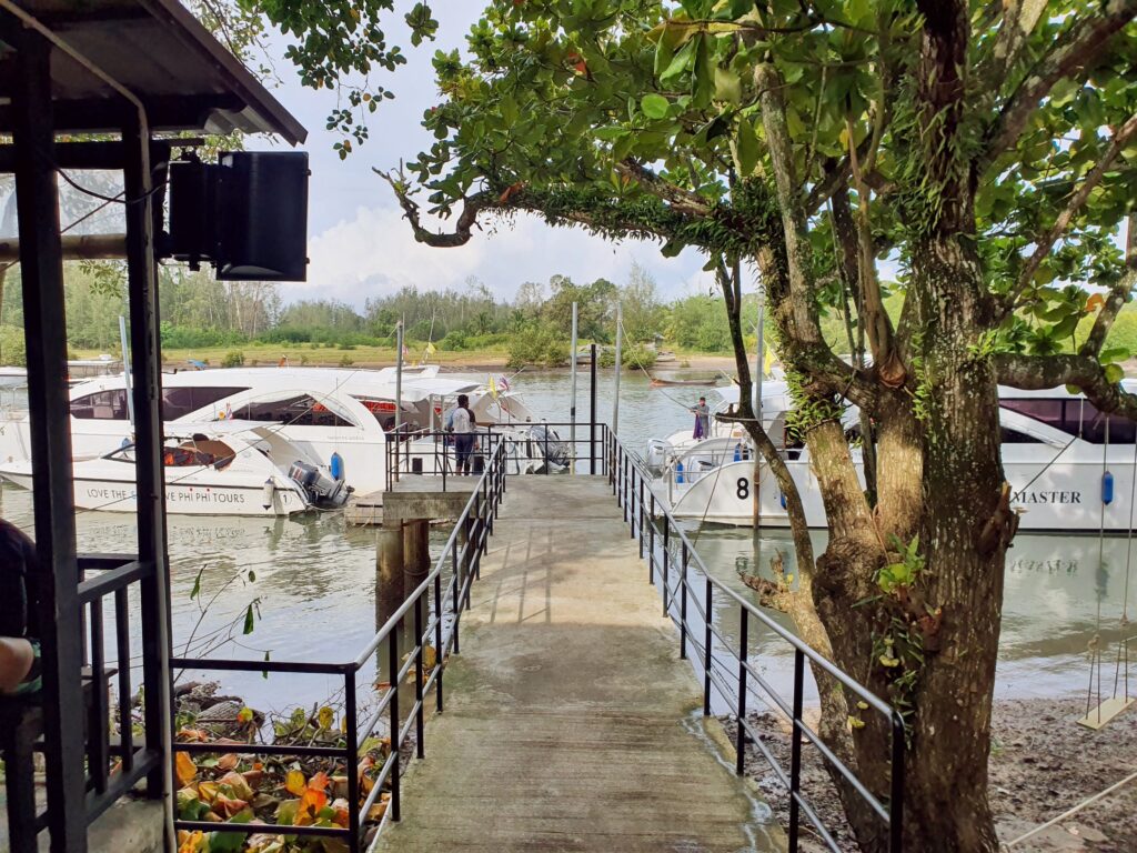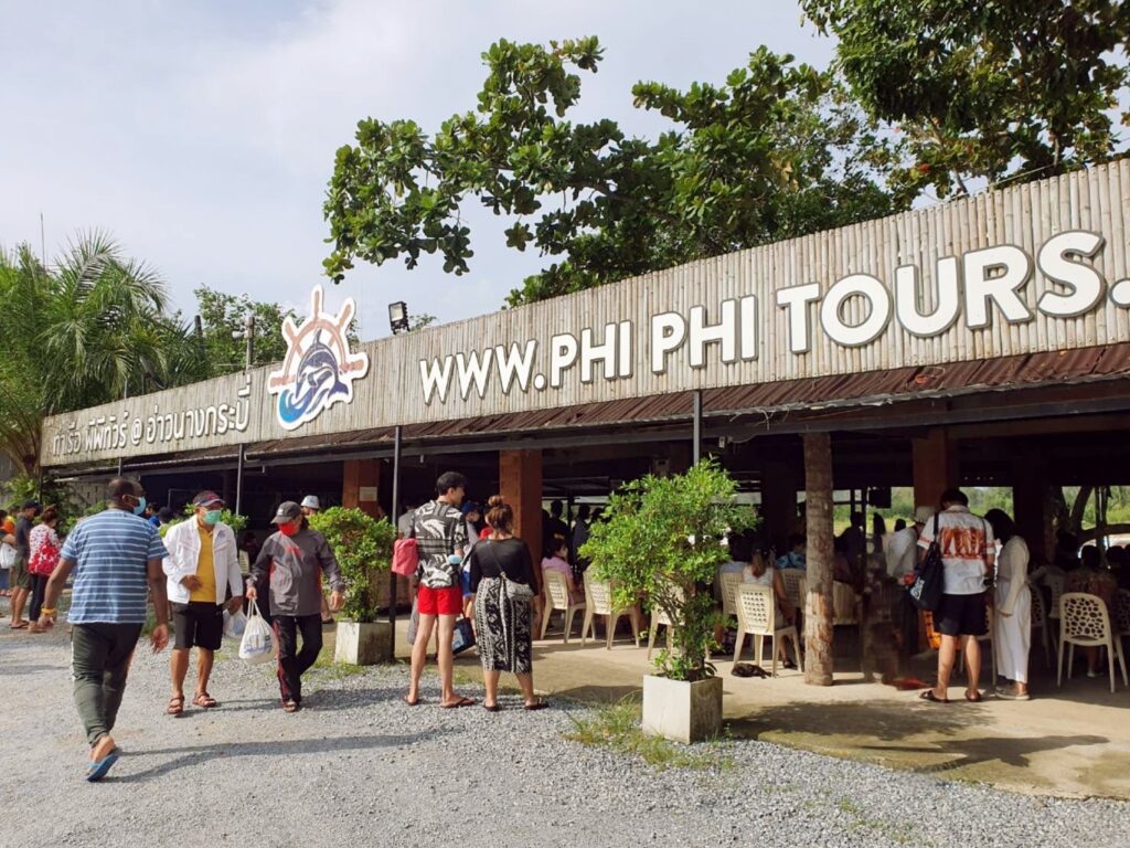 さて、8時にホテルピックアップで周辺ホテルに2か所立ち寄り船乗り場へ向かいました。船乗り場では、乗船名簿の記入(ホテル名と名前)と入島料の支払い400バーツがありました。