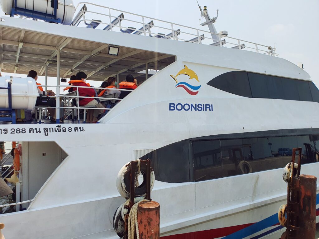 Laem Sok埠頭からフェリーで行くのですが、事前に調べてタイ人からの評判がとても良かったBOONSIRI FERRYというフェリー会社 (Webサイト)を事前予約しました。料金は往復で1人1,000バーツ。宿泊予定のホテルまでの送迎付きです。