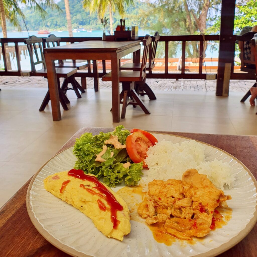 夜ご飯はホテル内のレストランへ。ここではパネーンカレーとステーキを頼みました。お値段もとても良心的で美味しかったです。ちょうどサンセットの時間帯に行ったのですが、レストランからの眺めがとても綺麗で窓際の席を希望する場合は予約をお勧めします。