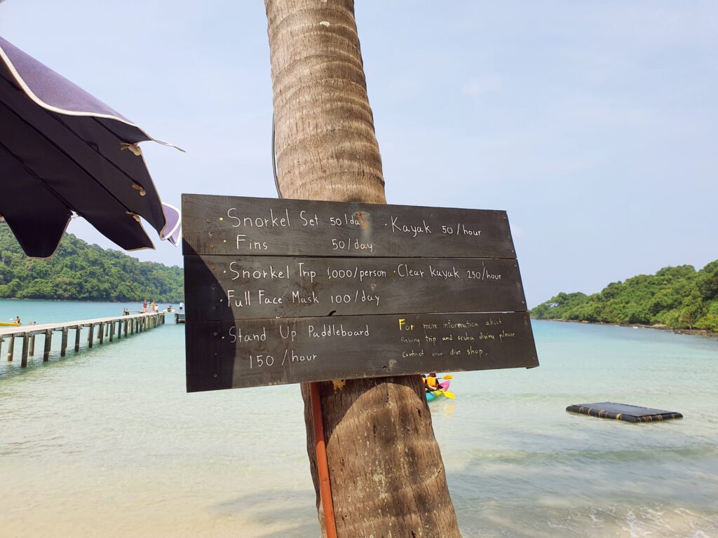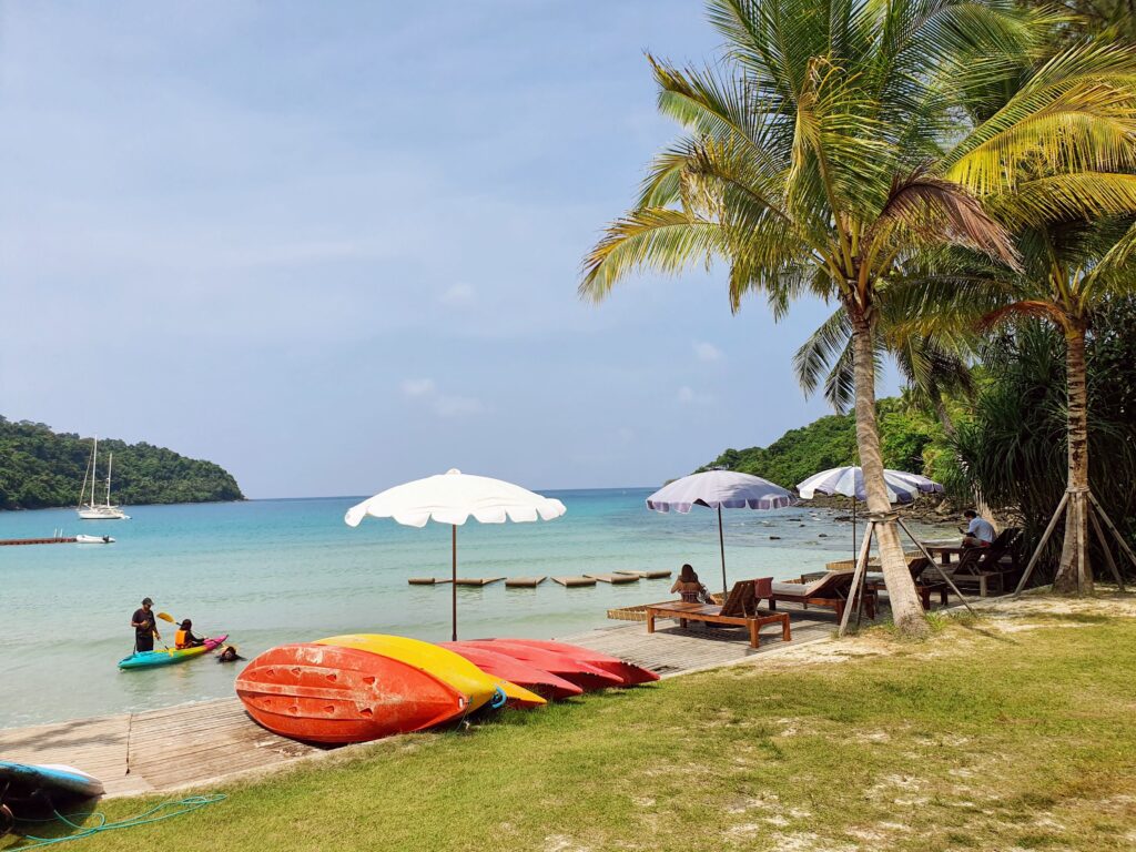 シュノーケルセットやカヤック、パドルボートのレンタルもあり、利用されているお客さんも多かったです。(私たちは1泊と時間が無かったのでここでは断念し、次のホテルでレンタルしました。)