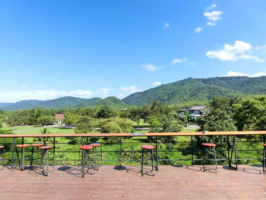 屋内とテラス席があり、テラス席からは山の景色をバックにお茶を楽しむことが出来ます。タイの軽井沢というものの12月から2月以外の乾季以外は基本的に30度近い暑さなのでテラス席では写真撮影を楽しみ、店内や日陰でお茶をしている人の方が多かったです。