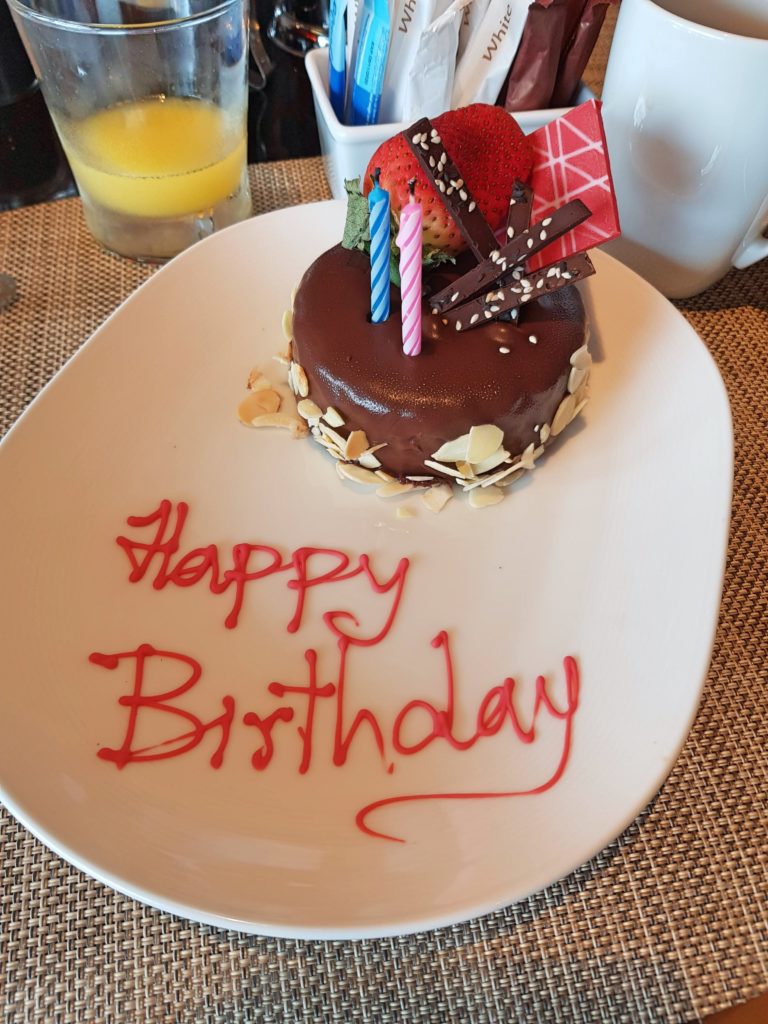 また、今回宿泊した時にたまたま誕生日が重なっていたのですが、友人が当日の朝、ホテルにサプライズをしたいと頼んでくれてケーキでお祝いしてくれました。きちんとお祝いしたい方は事前にホテルへお願いすれば出来るかなと思いますが当日の友人の思いつきにサプライズ対応して頂いたホテルに感謝、そして素敵な思い出になりました。(ケーキはかなり甘いです。笑)