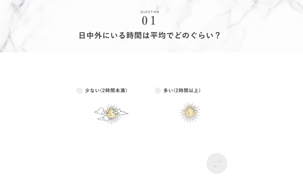 FUJIMIの肌診断は質問形式。こんな感じです。
