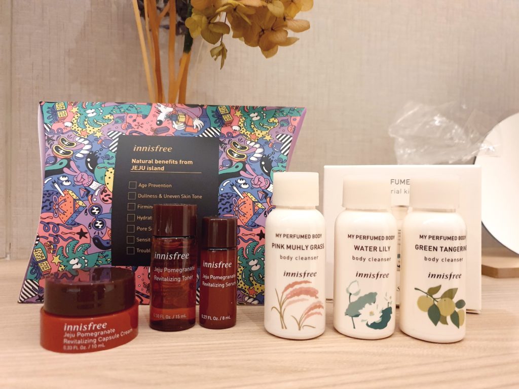 今回3,000バーツ以上の購入だったので、たくさんのサンプルセットを貰いました。イニスフリーのサンプルセットは旅行や持ち運びにかなり使いやすく、新商品もたくさん入れて貰えるのでかなりお得感があります。