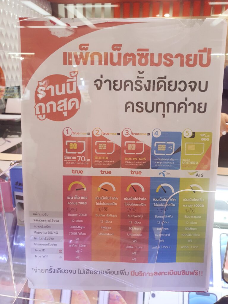 今回はタイ滞在中お勧めのSIMカードをご紹介します。タイにはAIS、True、DTACと大きな通信会社が3社ありますが、それぞれのプランにメリットとデメリットがありSIMカードを選ぶのは悩みどころの1つかと思います。今回は友だちと家族がそれぞれ1年間と1か月プランのSIMカードを購入したのでご紹介します。