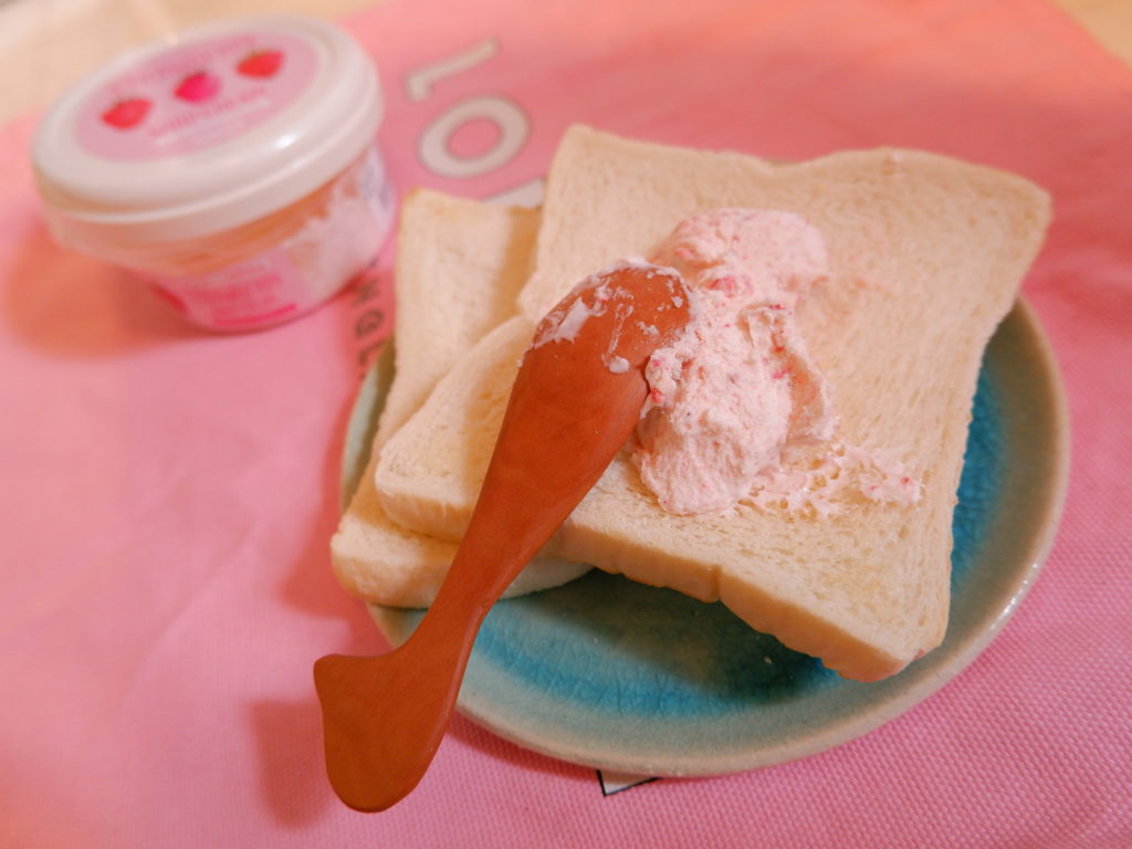 わたしはスタンダードな食パンに塗って食べてみましたが、甘い中にもいちごの酸味がふわっと広がりなんとも絶妙なコンビネーション!