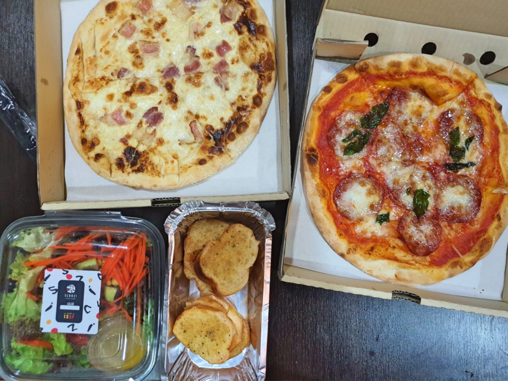 凄く美味しい訳では無いですが、Grabのプロモーションでミディアムピザ2つとサラダ、ガーリックトーストで446バーツ。個人的にはサラダとガーリックトーストが美味しかったです。