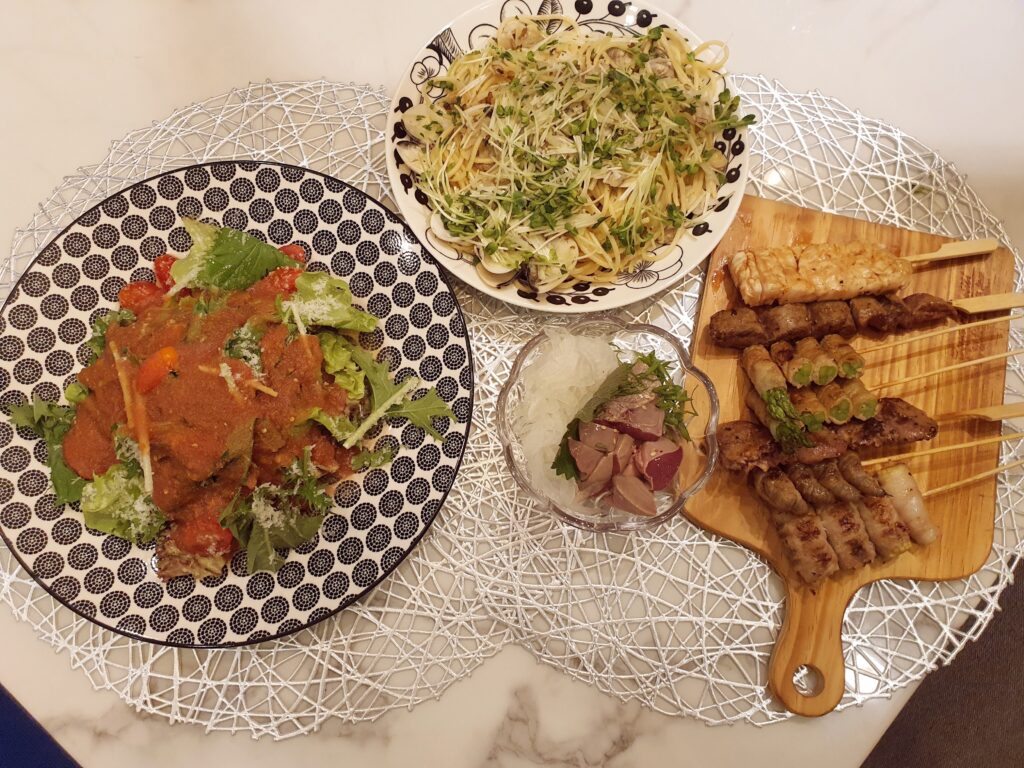 いつも予約でいっぱいの「あぶり石田」の料理がテイクアウトやデリバリーで頼めるようになりました!串焼きやレバ刺しはもちろん美味しいのですが、今回個人的にはトマトのサラダが絶品でリピート確定となりました!全部で1,230バーツ。(過去記事)