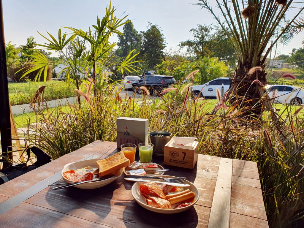 สำหรับอาหารเช้านั้นจะเป็นแบบบุฟเฟ่ และไม่ได้มีอาหารที่หลากหลายมากนัก เนื่องจากเป็น อาหารเช้าเช้าสไตล์แคมป์ แต่ต้องบอกเลยล่ะค่ะว่า ฉันรู้สึกว่ามันอร่อยมาก
